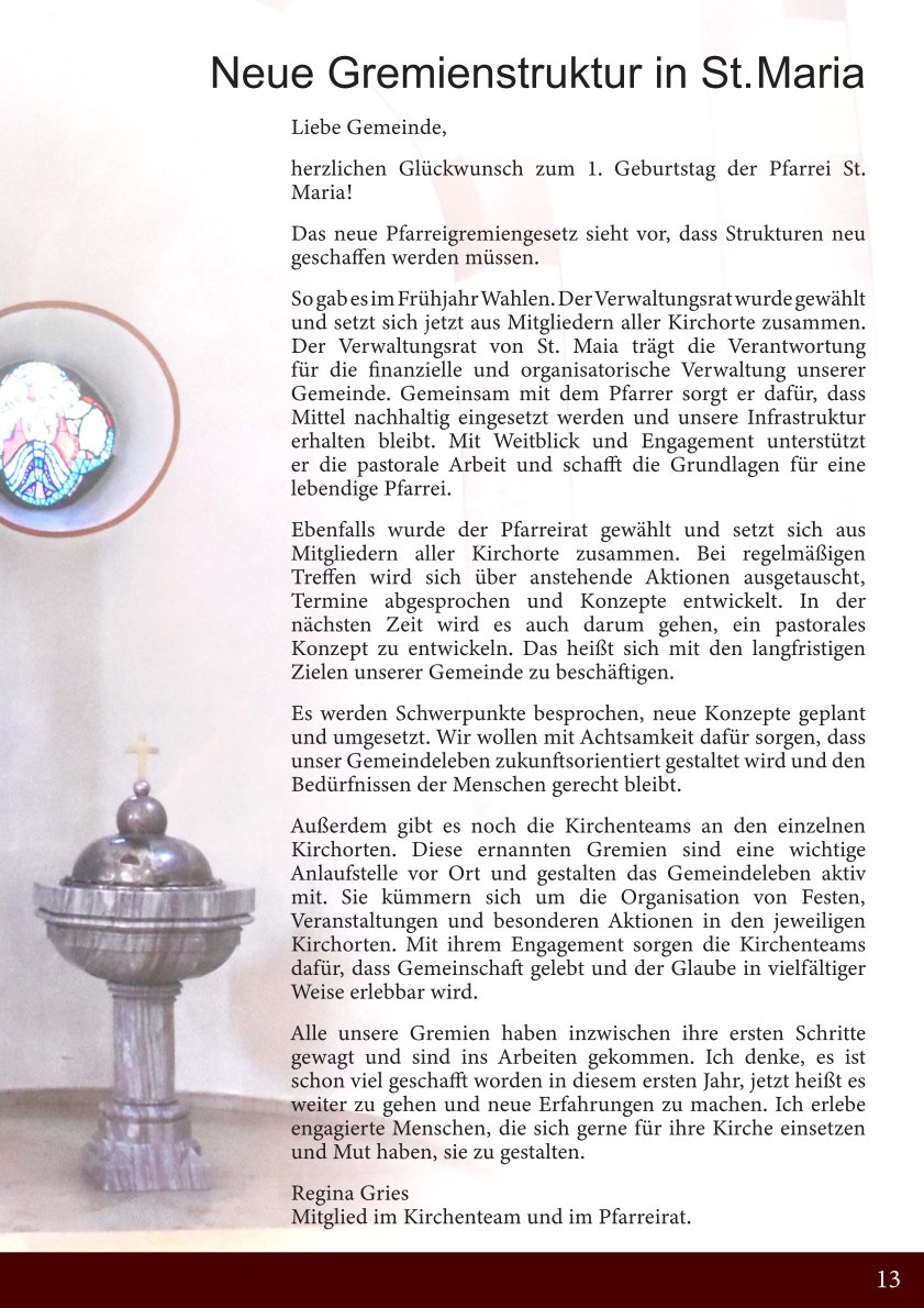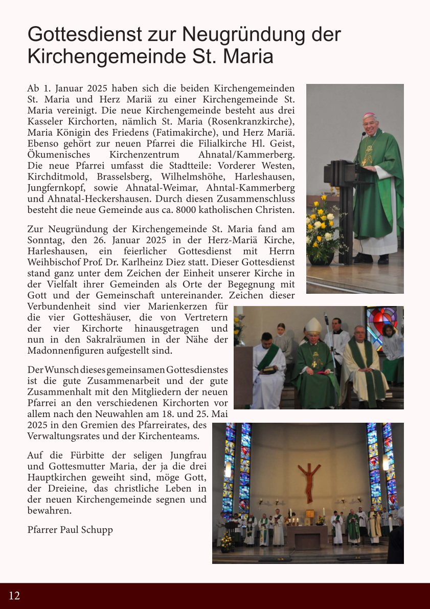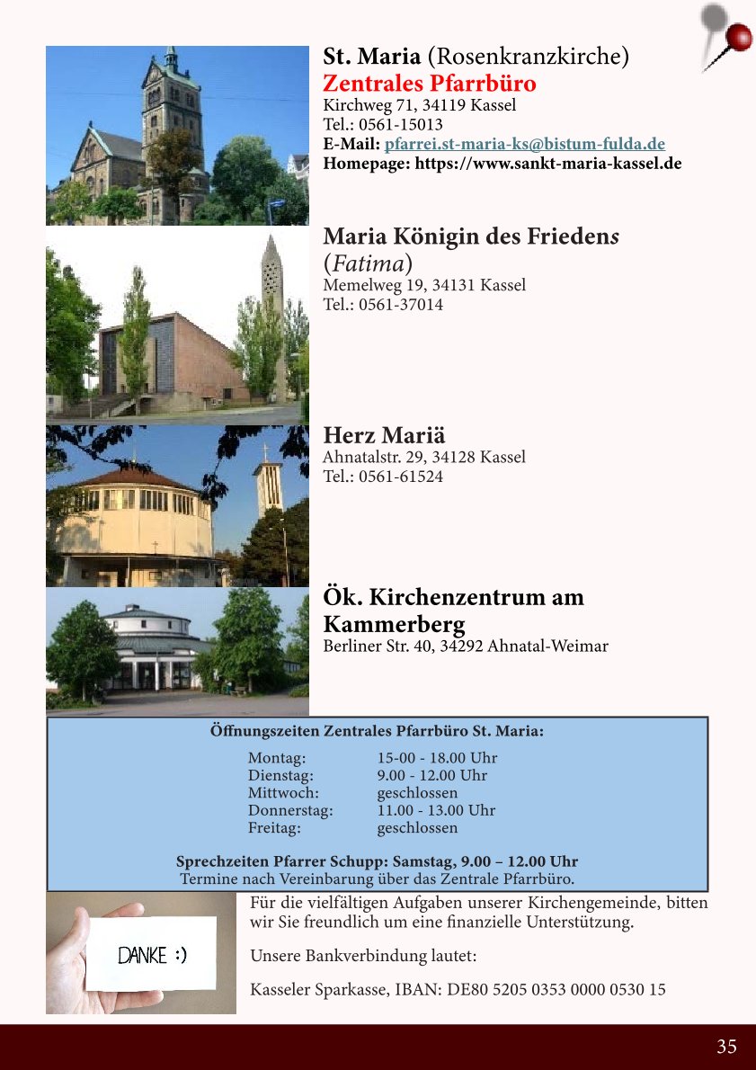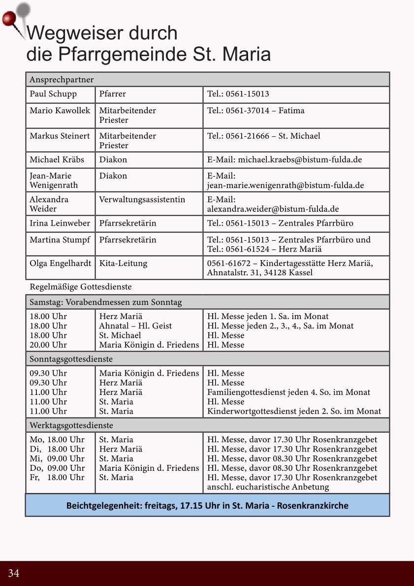 Öffnungszeiten Zentrales Pfarrbüro der Pfarrei St. Maria Kontaktstelle am Kirchort Herz Mariae Kontaktstelle am Kirchort Fatimakirche