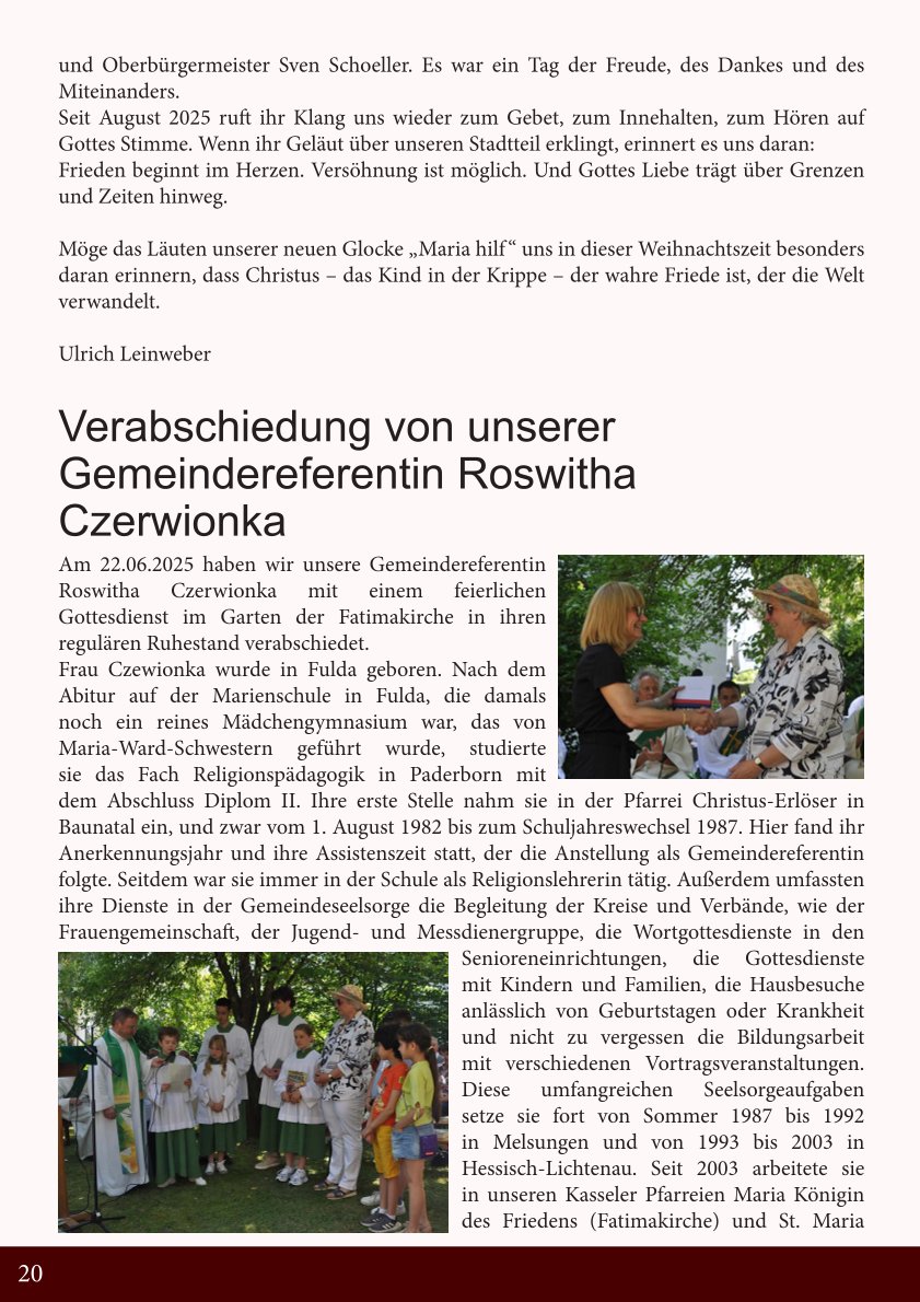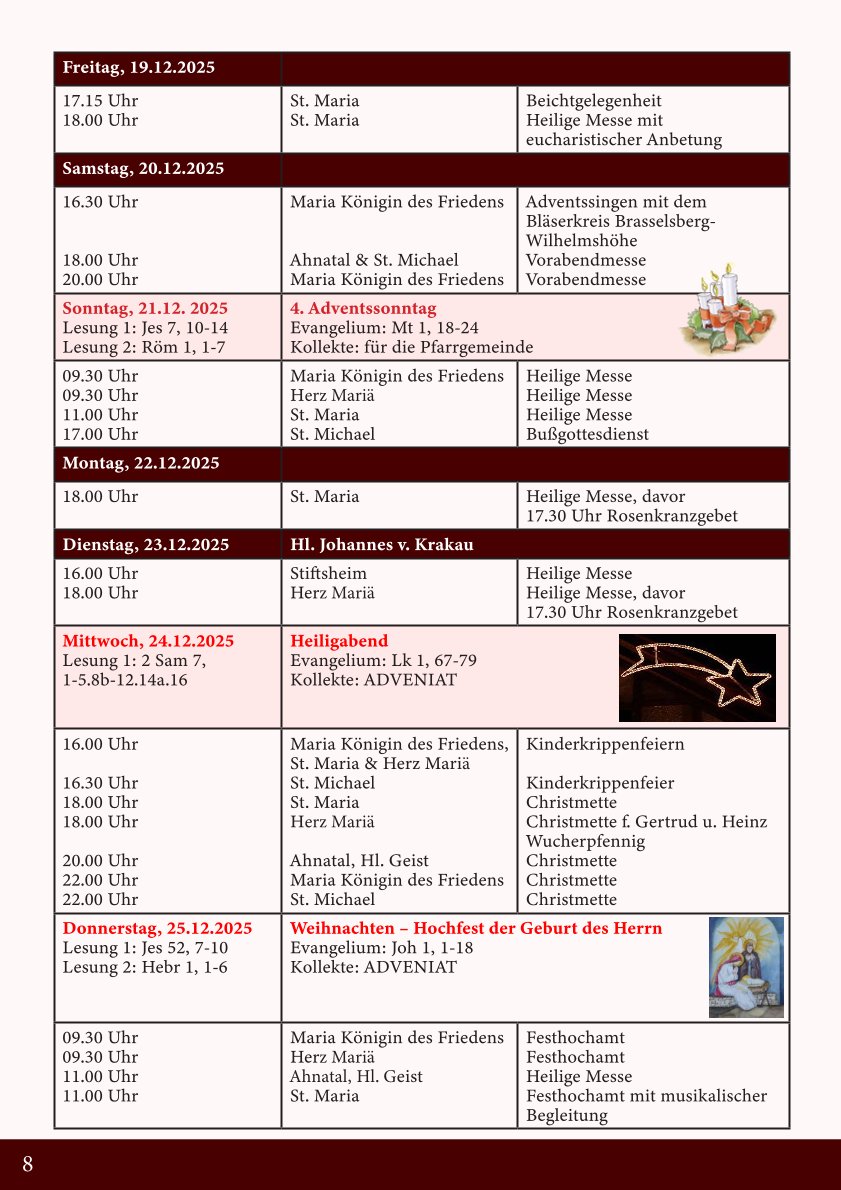Wir sind die katholische Pfarrgemeinde der Kasseler Stadtteile Bad Wilhelmshöhe, Brasselsberg, Harleshausen, Jungfernkopf, Kirchditmold, Vorderer Westen, Wehlheiden und der Ahnataler Ortsteile Heckershausen, Kammerberg und Weimar. Informieren Sie sich gerne hier über die Gottesdienste und Veranstaltungen in unseren vier Kirchen und Gemeinderäumen.