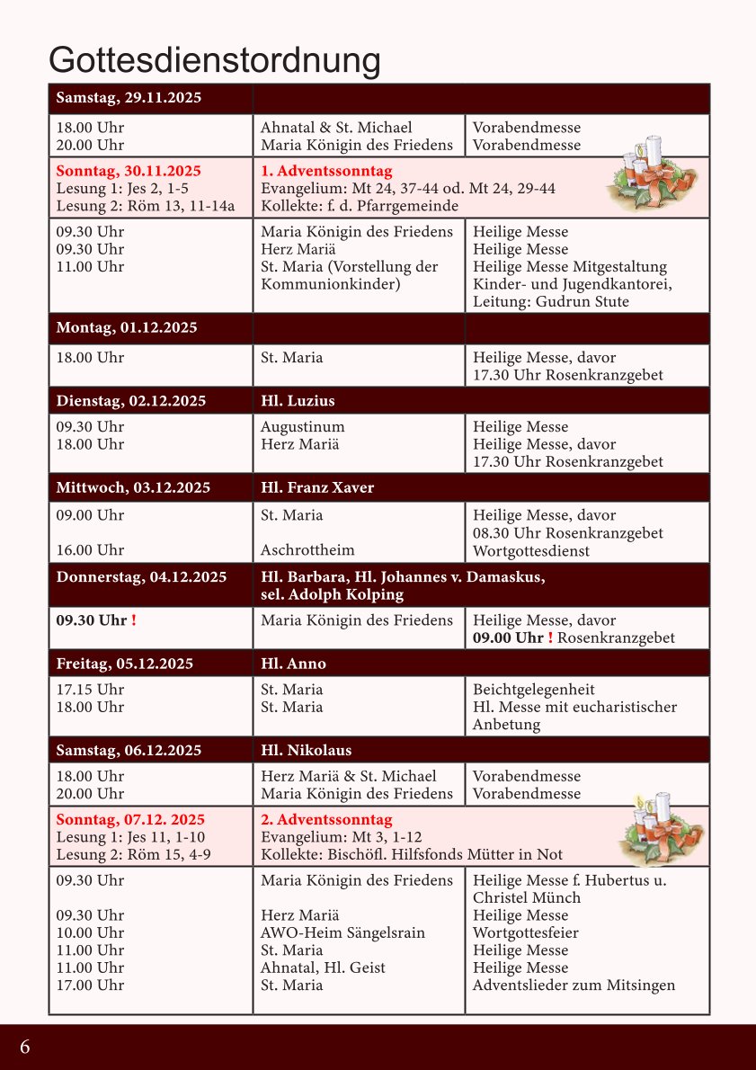Werktags sind tagsüber diese Kirchen unserer Pfarrgemeinde für Sie geöffnet: