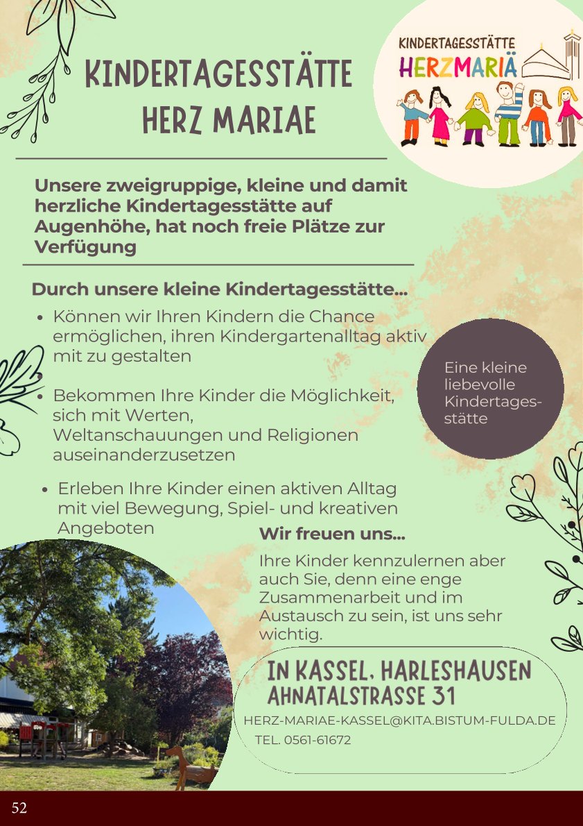Freie Plätze in der Kindertagesstätte Herz Mariae