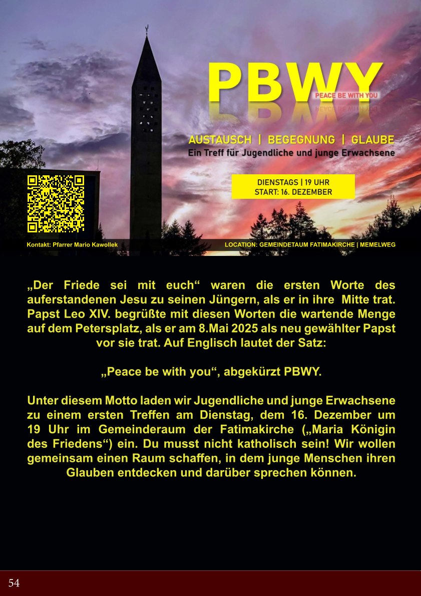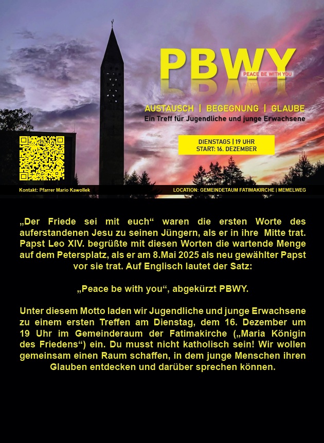 "PBWY-Peace be with you: Austausch-Begegnung-Glaube“, ein Treff für Jugendliche und junge Erwachsene - am 16.12. ist übrigens das Starttreffen!