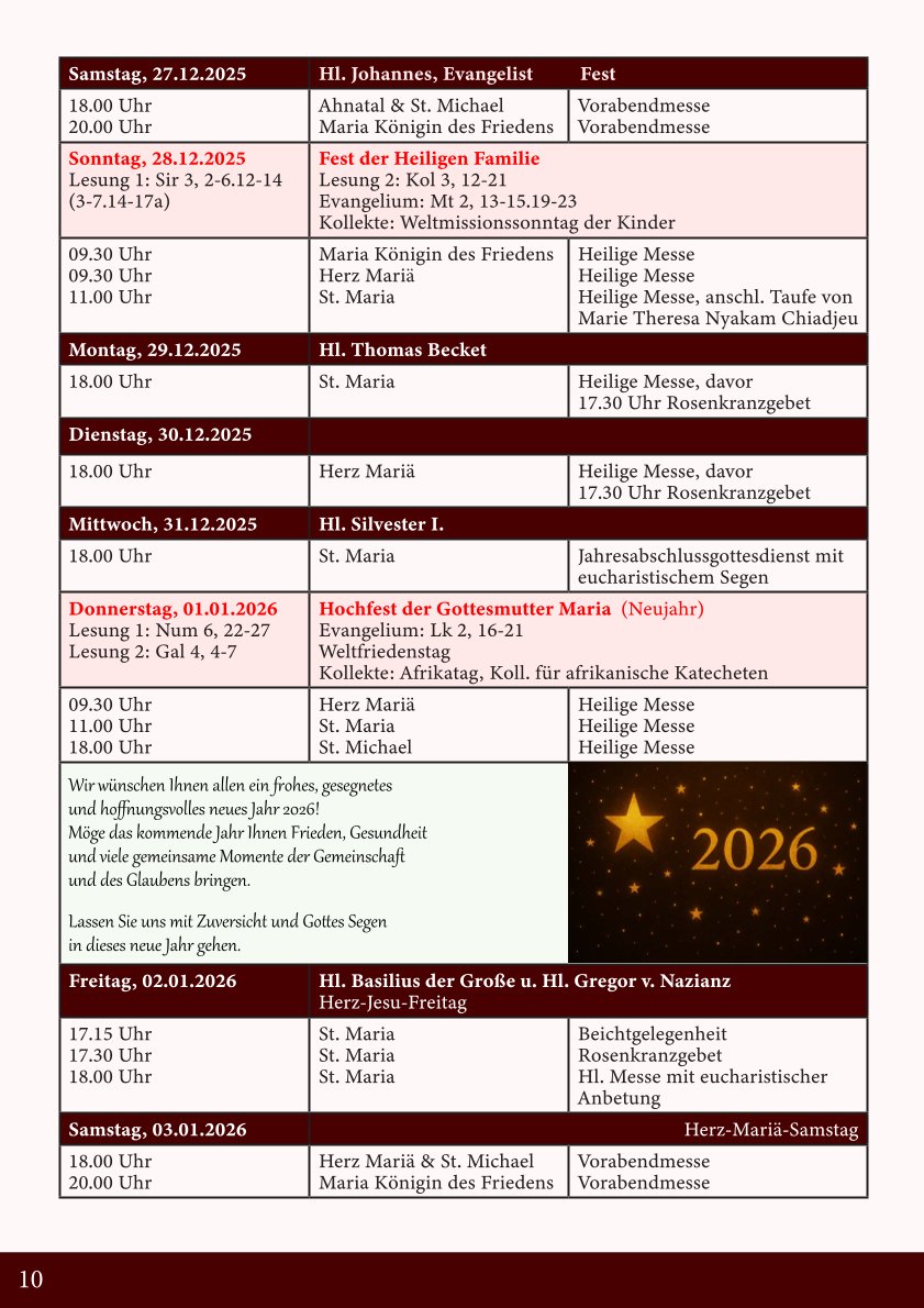 auch am 2. Feiertag, 26.12. um 16 Uhr in der Emmauskirche